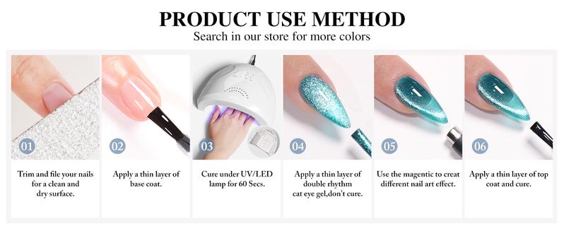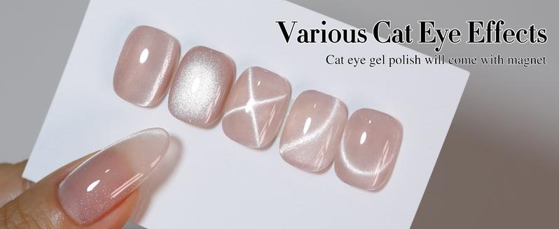 💖Cat Eye Gel Nail Polish : cat eye gel nail polish kit includes 1 color 15ml / 0.5 fl.oz gel nail polish. The cat eye gel can be combined with different bacse colors arbitrarily, you can get different colors nail art.You can use different base coat to creat different sytles.Each kit comes with one magnetic tool for you to create a different cat eye style for your nails.