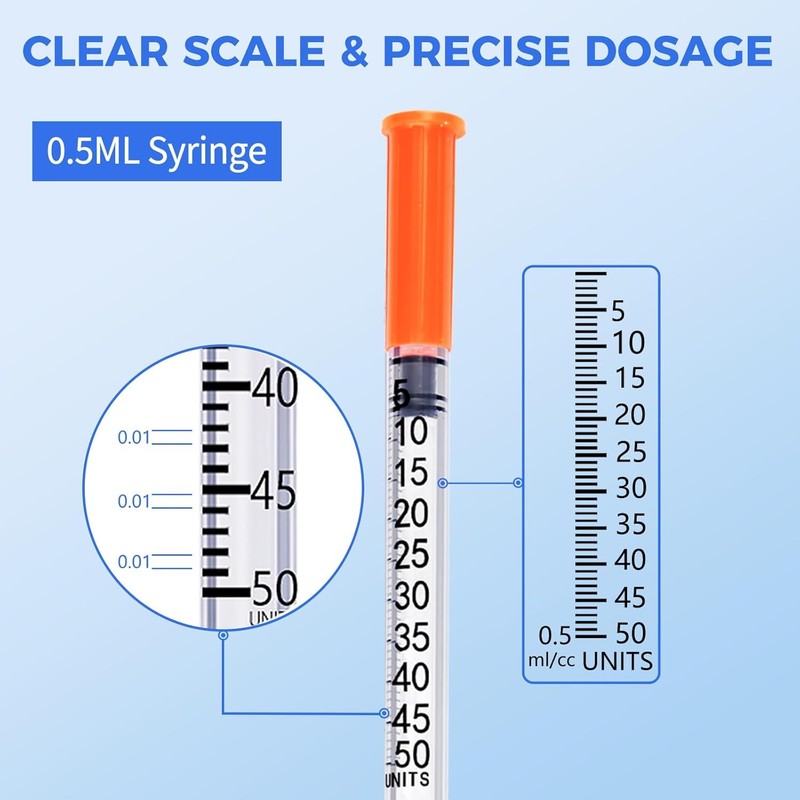 - Product Size - Syringe with 0.5 ml/cc and of 31G 5/16 in (8 mm).