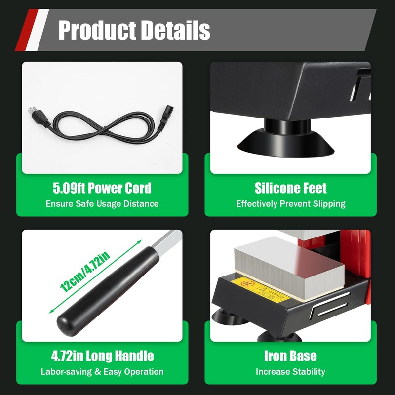 It also fulfills the needs of other applications such as stamping on leather, bags, T-shirts, drying flowers, plants, and pressing plastic pellets.