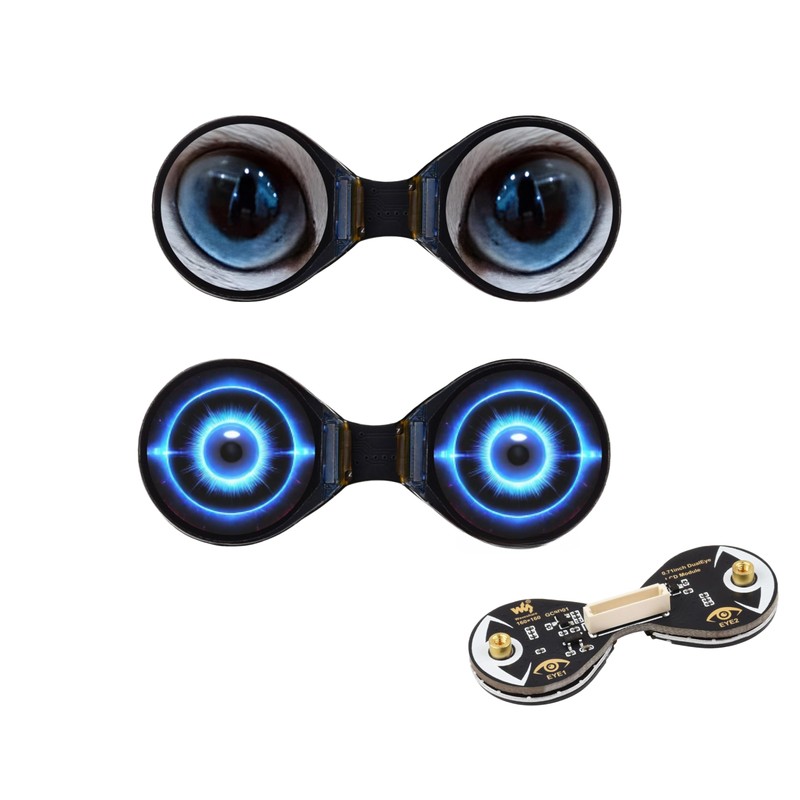 0.71inch Double Eye Round LCD Display Module, 160×160 Resolution, 65K Colors, IPS Display Panel, SPI Interface, Support ESP32/Pico Controller Boards, Embedded GC9D01 Driver