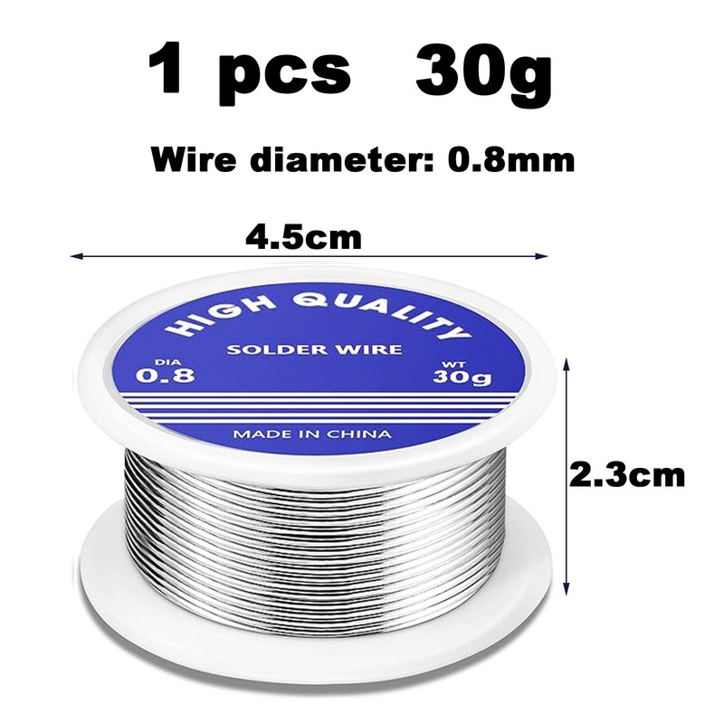 - You will receive a roll of 30 g solder wire with a diameter of 0.8 mm. The solder wire has a flux content of 2.5% and a melting point of 235°C. Flexible fine wire, ideal for soldering at home.