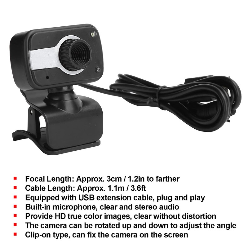 - 【CLIP ON PC CAMERA】The webcam is clip‑on type, you can clamp it on the screen or desktop for easy fixation during use, can be rotated up and down freely, and the angle can be easily adjusted as needed. Small in size and does not occupy space for use and storage.