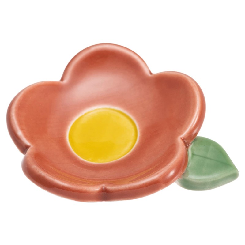 030550 Tatara Chopsticks Rest, Camellia, Tsubaki, Red, Mino Ware Pottery, Handmade, Hand Binning, Tatara Making