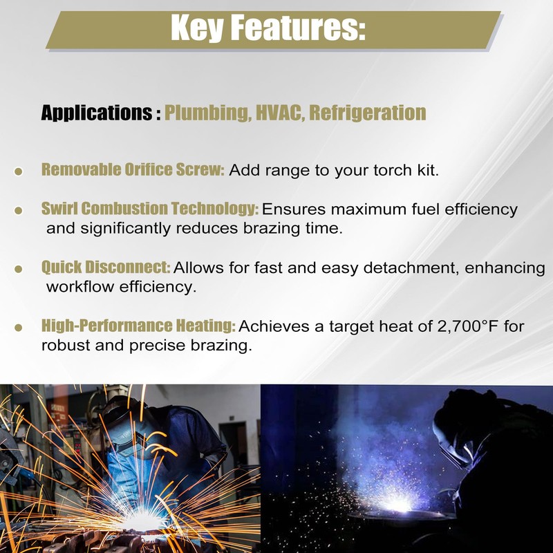 - 【 Versatile Application Range 】 Whether for plumbing, HVAC, or refrigeration systems, the air acetylene torch tips delivers outstanding performance. It is capable of soft soldering copper tubing from2 to 3-1/2" and silver brazing from 1 to 2", meeting diverse welding requirements