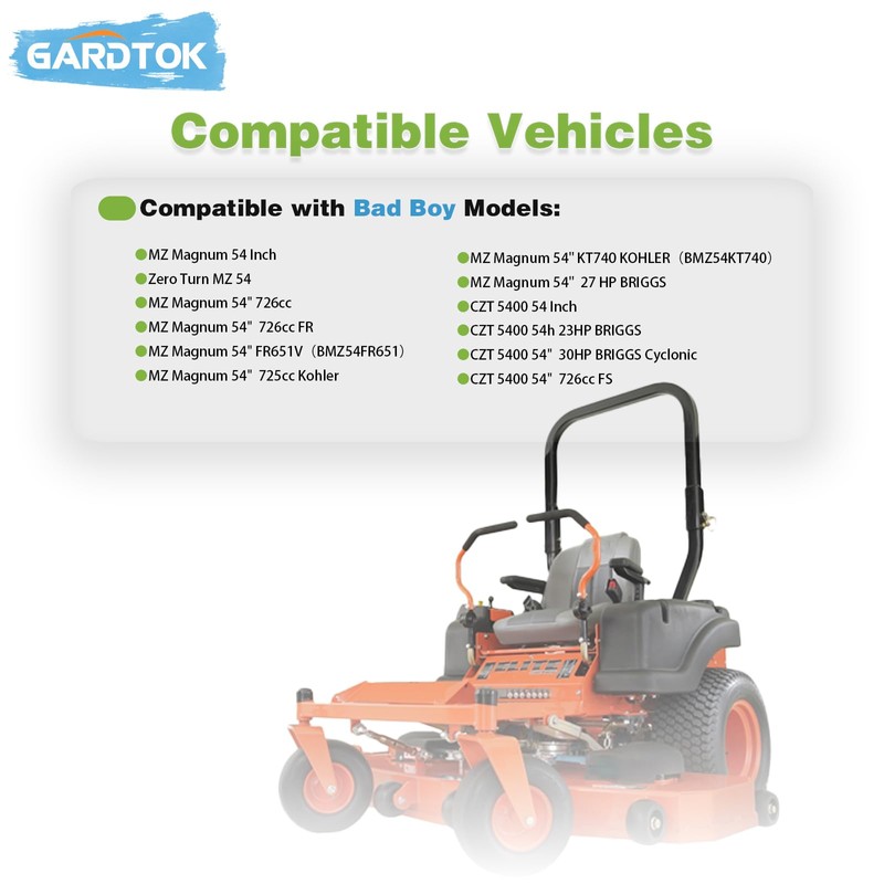 - 【Fitment】Compatible with Bad Boy MZ Magnum 54”, Zero Turn MZ 54”, Commercial ZT (CZT) Series, such as CZT 5400 54”, MZ Magnum 54a 726cc, MZ Magnum 54˝ 726cc FR, MZ Magnum 54 "FR651V [BMZ54FR651], MZ Magnum 54˝ 725cc Kohler, MZ Magnum 54 "KT740 KOHLER [BMZ54KT740], MZ Magnum 54˝ 27 HP BRIGGS, CZT 5400 54h 23HP BRIGGS, CZT 5400 54˝ 30HP BRIGGS Cyclonic and CZT 5400 54˝ 726cc FS