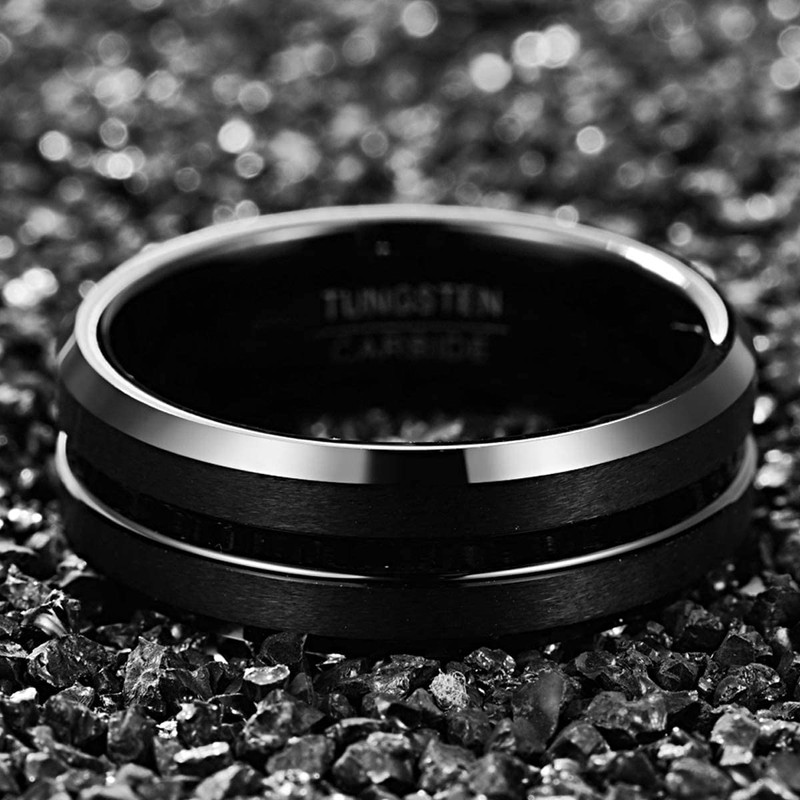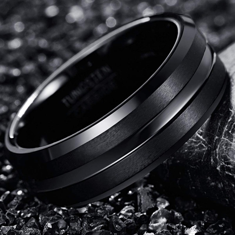 083BASE Men's Tungsten Carbide Rings Black Outer Width 8 mm Comfort Fit Design Tungsten Rings