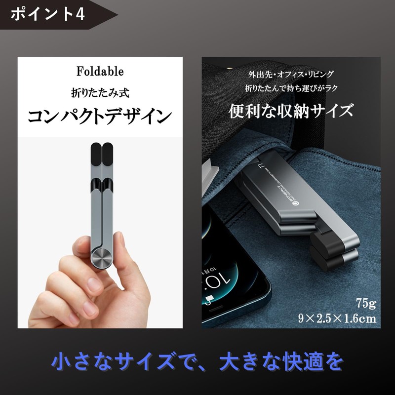 - 4. Easy to Carry: Product Size: 3.5 x 1.0 x 0.6 inches (9 x 2.5 x 1.6 cm); Weight: 2.6 oz (75 g) and compFoldable design Fits in your bag or pocket, enjoy your anime, movies, remote meetings on travel, on the go, in the office, living room, kitchen study desk, etc