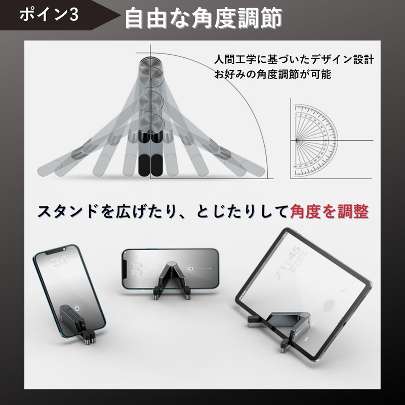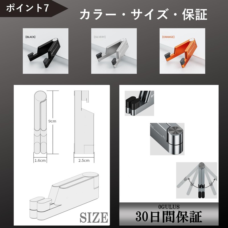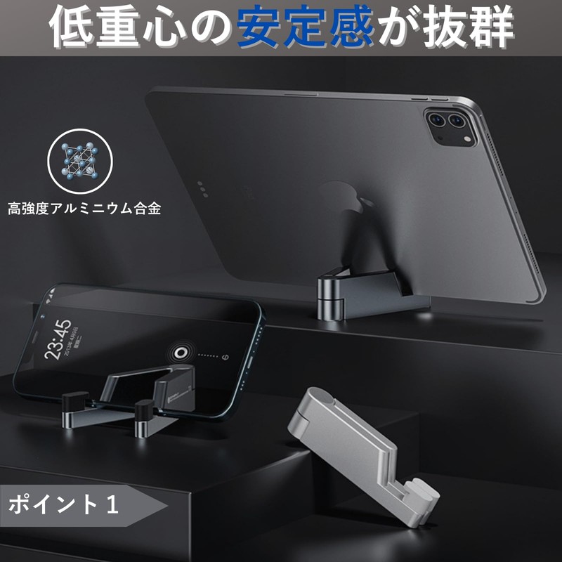 0GULUS [High Strength Aluminum Alloy] Smartphone Stand, Tablet Stand, Angle Adjustable, Compatible with 4 - 13 Inches, Foldable, Lightweight, Compact, Tabletop, Simple, Slim Design (Black Metallic)