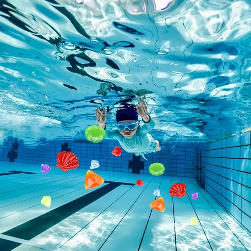 - Packing list: 8 children's diving stones in 8 different shapes and 10 diving diamonds in different colours; sufficient quantity and style to meet their different decoration needs. The colour of swimming pool gemstones is not fixed, but the shape is fixed; the colour and shape of crystal diamonds are set.