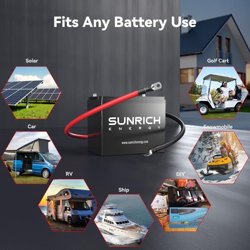 - 【Versatile Use】From automotive to marine, RV to motorcycle, and beyond, SUNRICH ENERGY battery cables are the go-to choice for a wide range of wiring needs, including solar and power inverter setups.