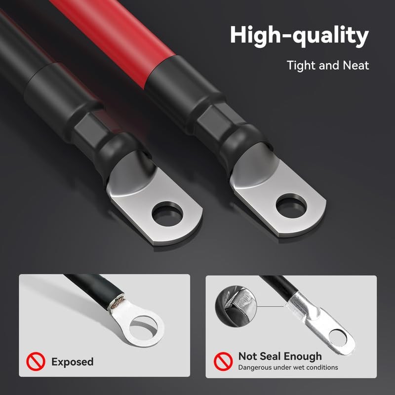 - 【Industry-Grade Quality】Our PVC-insulated battery cables meet industry standards, ensuring pro-level performance with precise cutting, crimping, and heat shrinking.