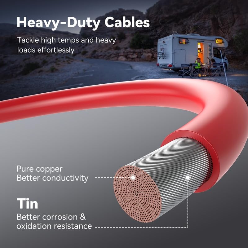 - 【Built Tough】Engineered to handle high temps and heavy loads, our cables stay resilient even in scorching 90°C heat, delivering reliable power transmission.