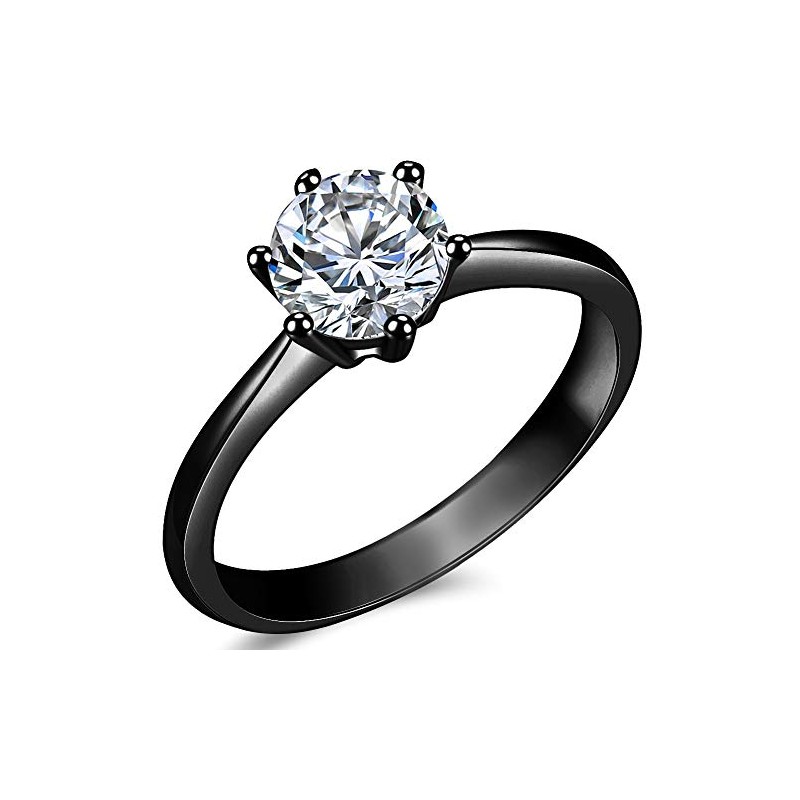 1.0 Carat Classical Stainless Steel Solitaire Engagement Ring (Black, U)