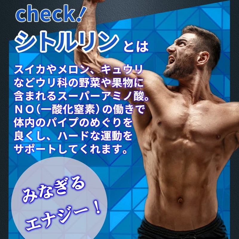 - ✅【業界屈指の配合量】シトルリン配合のサプリメントです。シトルリンを1,000mg(1日5粒)を摂取することでエナジーに溢れた毎日を過ごそう!