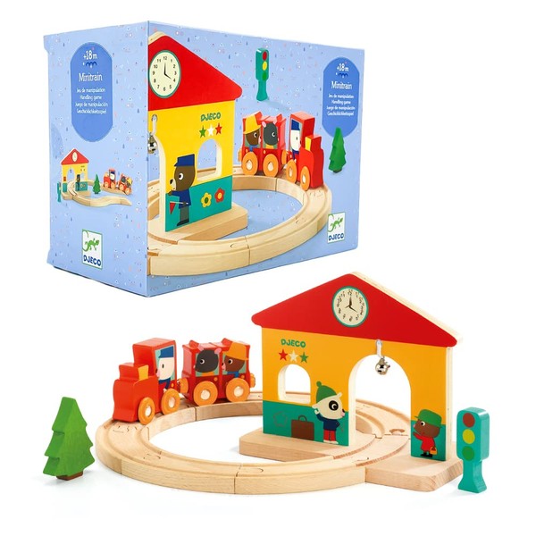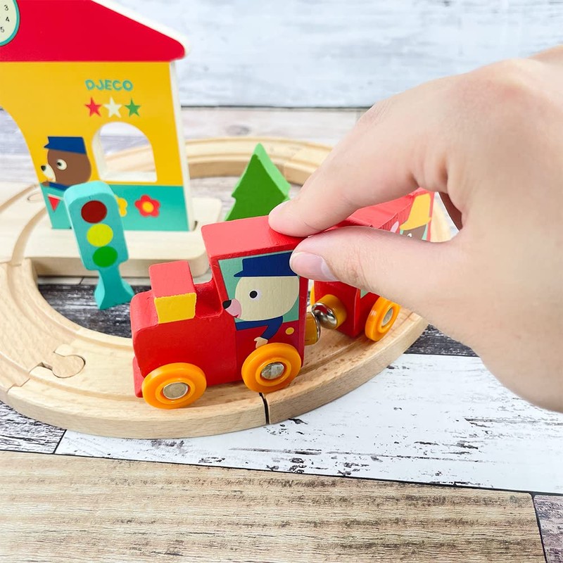 電車セット 男の子 乗り物おもちゃ 線路 電車 レールセット 木製 1歳半 木のおもちゃ 電車ごっこ 赤ちゃん 知育玩具 汽車 子供 1歳 12か月 ベビー 誕生日 プレゼント 海外 | DJECO ジェコ ミニ トレイン |(DJ06389)