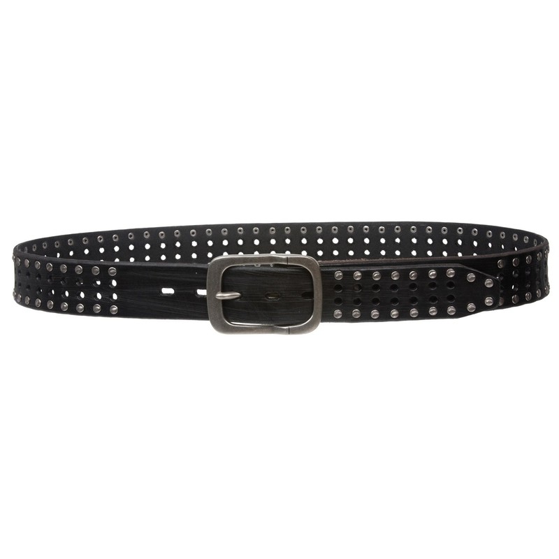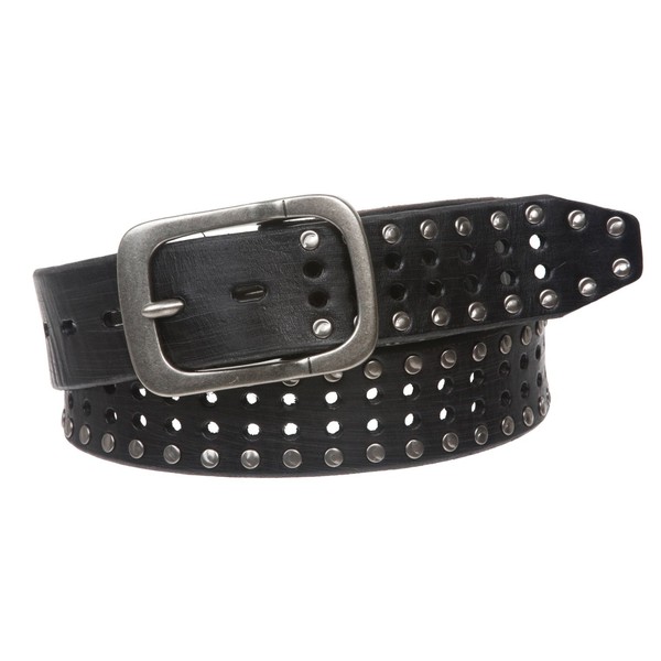 1 1/2" (38 mm) Snap on Vintage Cowhide Metal Circle Studded Leather Belt, Black | 34"
