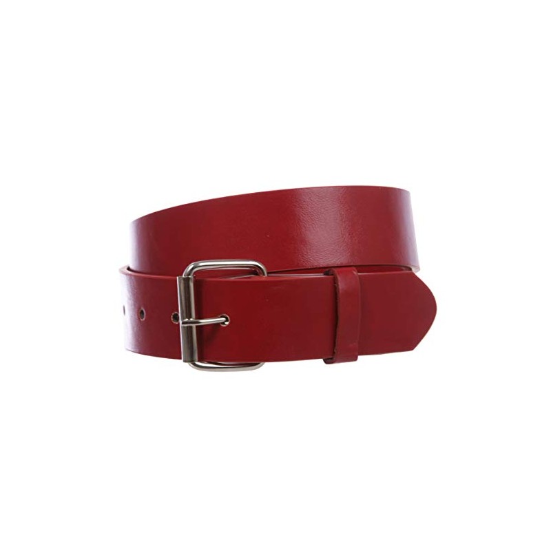 1 1/2" (38mm) Snap On Plain Leather Jean Belt With Roller Buckle, Dark Red | ...