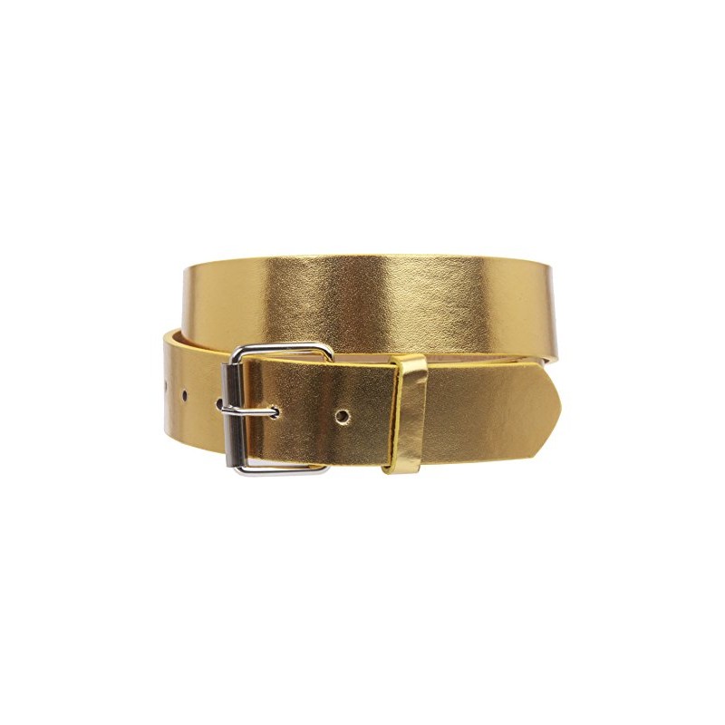 1 1/2" (38mm) Snap On Plain Leather Jean Belt With Roller Buckle, Gold | l (35-37" waist)
