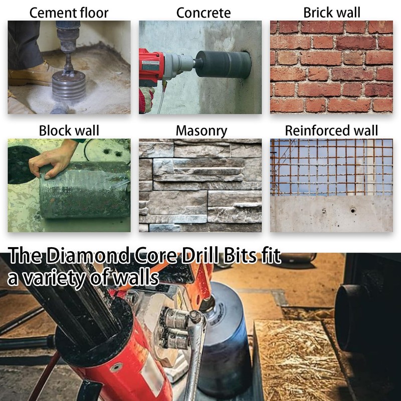 • Wide Range of Applications: Suitable for drilling concrete, red brick, tile masonry brick and cinder block walls, asphalt,marble rock, stone, and more; For installations conditioners, pipes, range hoods and other projects.