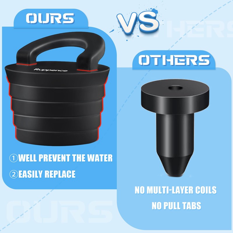 - Premium Material:Made of premium rubber material, the drain holes stoppers are soft, no toxic, environmental friendly and light in weight. You can carry it to anywhere you want and replace it in anytime you need. The premium silicone stands wear and tear, the hole drain plugs can be used for a long time.