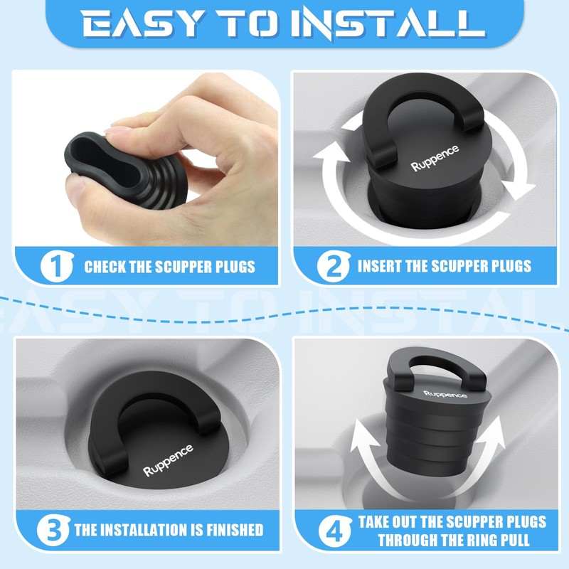 - Easy to Install and Replace: Just few steps to install the suction cup. First, check the stopper plug. Second, insert the hole seal boat drain scupper plugs. Third, the installation is finished. Fourth, take out the scupper stoppers through the ring pull.