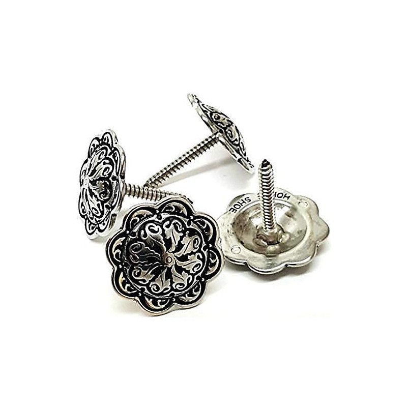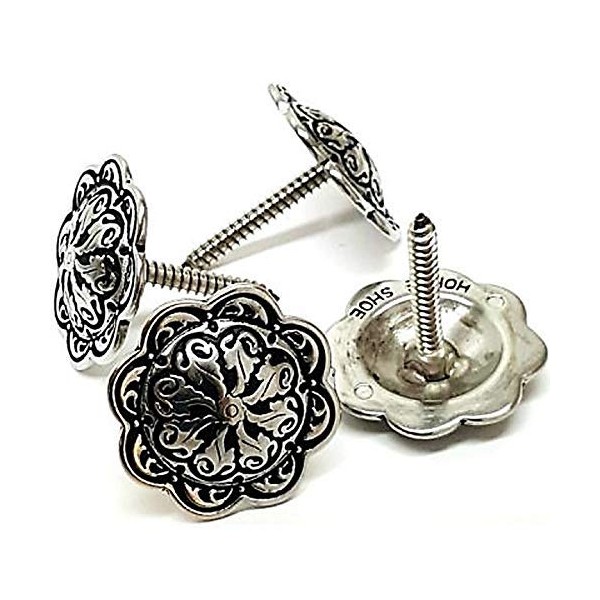 1 1/2" Western Saddle Accented Silver Floral Screw in Conchos 4 Pack