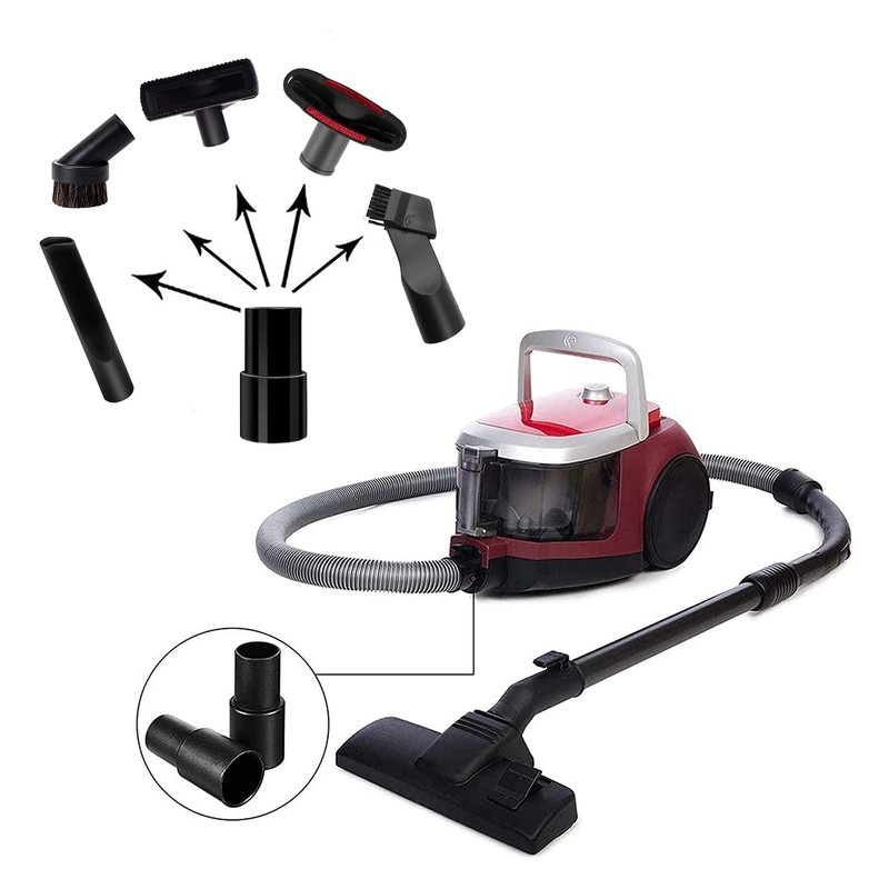 - 7 VACUUM ACCESSORIES: horsehair round brush*2, flat suction nozzle*1, two-in-one flat suction*1, sofa suction nozzle*1, T-shaped brush*1, adapter*1