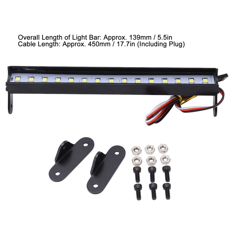 1/10 RC Roof Light Bar Universal White Light RC Crawler Light Bar with 15 LED Lamp Beads Mounting Brackets for 1/10 RC Car