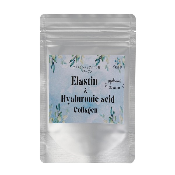 エラスチン+ヒアルロン酸 コラーゲンタブレット(粒)1か月分 30粒入り 1粒にエラスチン100mg ヒアルロン酸100mg コラーゲン100mg配合 原材料:ヒアルロン酸末(中国製造)、エラスチン末(豚由来)、フィッシュコラーゲン末、セルロース、ステアリン酸カルシウム、微粒二酸化ケイ素