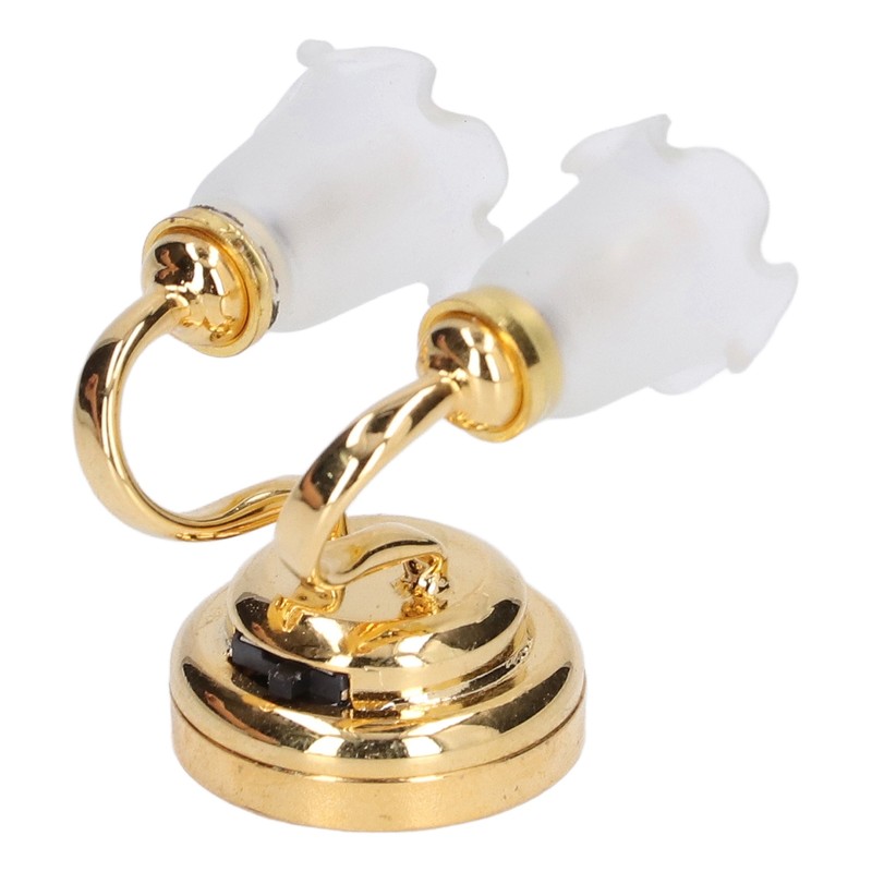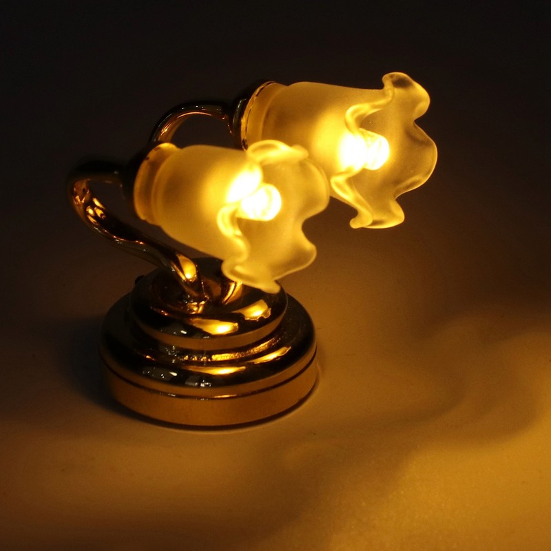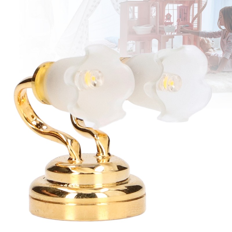 1、High Quality Material: The doll house mini lamp is made of metal and glass, which is sturdy and durable to ensure a long service life. 2、Lovely: The mini lamp is cute, beautiful, and exquisite in making. It can attract children's attention and is suitable as a gift for children. 3、Easy to Use: Double headed flower shaped lampshade with gold plated bracket, base with on, off switch, easy to operate. 4、Built In Button Battery: No wiring, no plugs, and tape on the bottom, which is convenient for you to place it anywhere. 5、Upgraded: 1:12 doll house model, this series of new LEDs have been updated to larger and brighter doublehead wall lights.