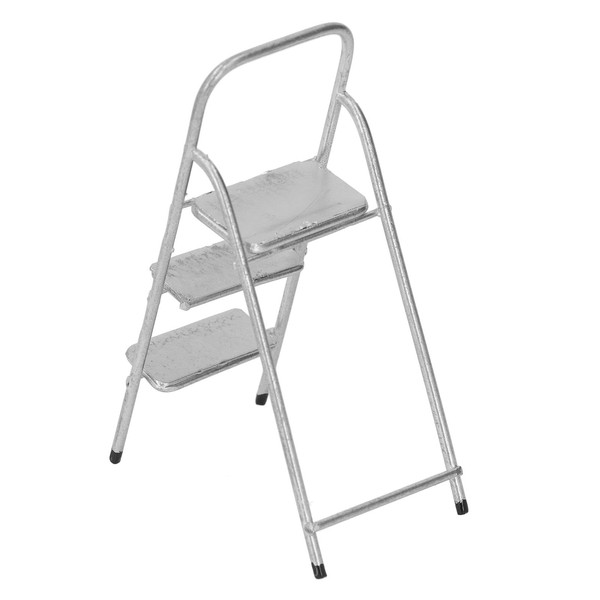 1/12 Miniature Step Ladder Metal Delicate Texture Mini 3 Step Ladder for Dollhouse Furniture Accessories (Silver)