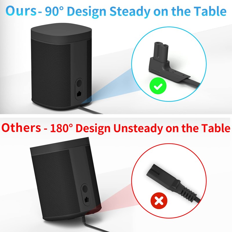 2. Perfect Matched: The power cord fully fits with the bottom of the speaker after used - stable. It is different from other power cords on the market and will bulge after used - unstable.