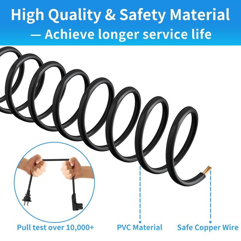 3. High-Quality: It is made of safe copper wire and PVC material,which can ensure the safety of your power supply and prevent the power cord from breaking easily.