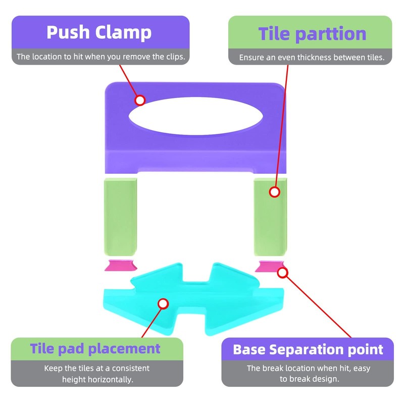 - 【Material & Demand】Our tile spacers are made of Polypropylene Plastic (PP). Generally, four clips are recommended per tile. This is to ensure all four corners are flush with the neighboring tile. If you have larger tiles, 6 or 8 clips per tile are recommended.