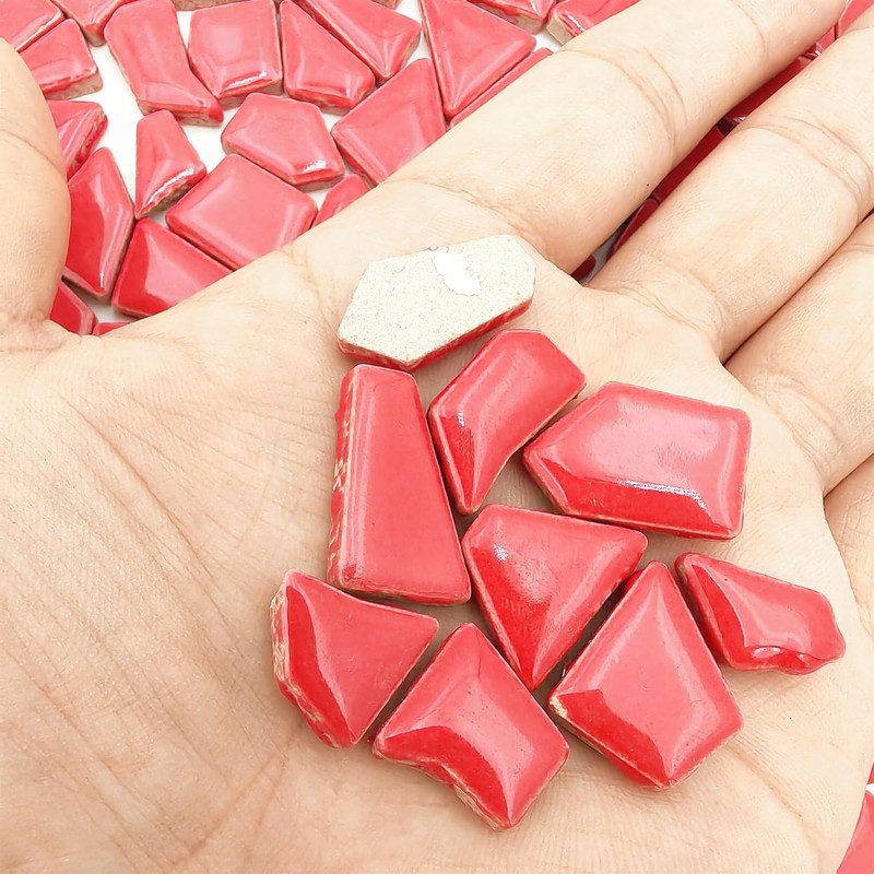 1.1LB Irregular Ceramics Mosaic Tiles, Mosaic Pieces Stones for DIY Mosaic Making Craft Hobby Arts Home Wall Decoration (Red)