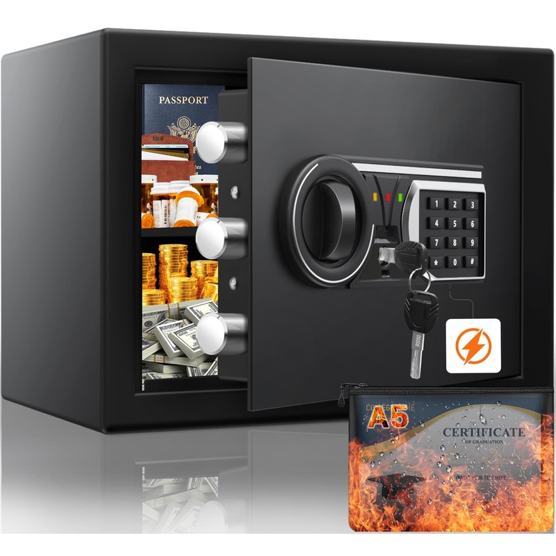 1.2 Cu Ft Fireproof Home Safe, Small Safe with Keypad and Removable Shelf, Digital Home Security Safety Box for Money Firearm Medicines Valuables