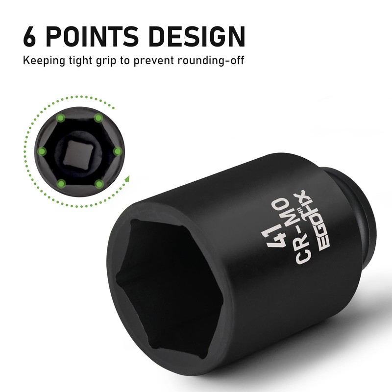 1/2" Drive Deep Impact Socket, 41mm Metric Socket, CR-MO 6 Point for Easy Removal of Axle Nut