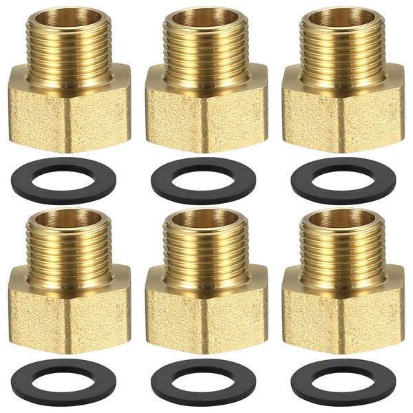 1/2” Female to 3/8” Male Adapter, 6 Pcs BSP Thread Brass Hose Connectors, Reducer 1/2 to 3/8 Hex Bushing Reducing Connector Fittings for Water, Gas, Pipe, with Sealing Rings