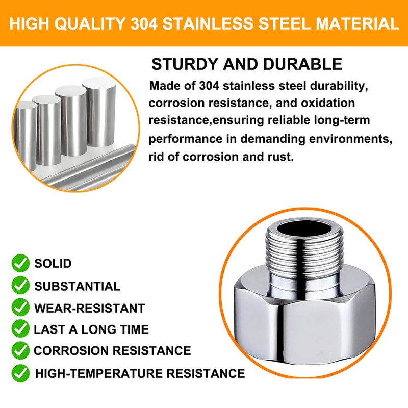 - 【Premium 304 Stainless Steel】 Corrosion-resistant & durable for long-term use, outperforms plastic or brass adapters in high-pressure environments.