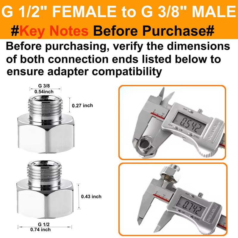 - 【Universal Compatibility】 Converts 1/2" male to 3/8" female threads, perfect for toilet water supply lines, kitchen faucet adapters, and garden hose connections.