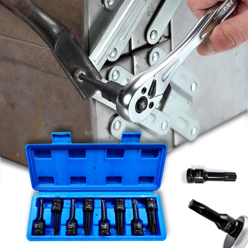 - [Torx Bit Socket Set]: Our torx socket set includes 8 torx sockets, including: T30, T40, T45, T50, T55, T60, T70, T80. The ultimate solution for your fastening needs! This high-performance set is designed to provide quick and easy removal of Torx fasteners, making it an essential addition to any tool collection.