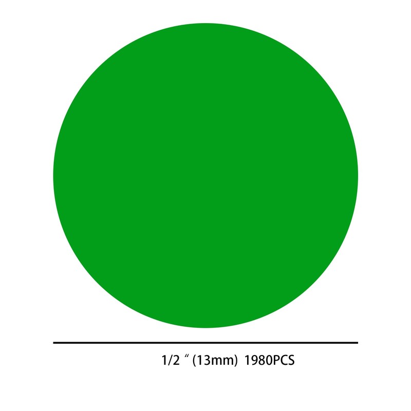 - The green labels come with 1980 pieces dot stickers, 1/2 inch(13mm) diameter color sticker labels, 15 sheets per pack