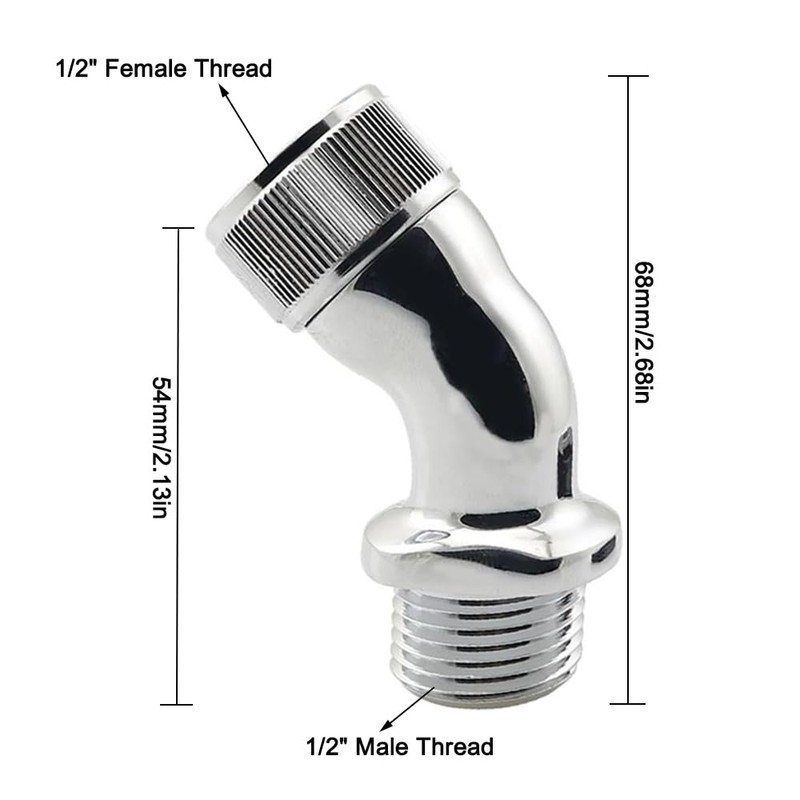 - Tool-Free Setup: Simply attach the 1/2" female end of the elbow adapter to the shower arm and the 1/2" male end to the shower head. No wrenches needed; threads engage smoothly by hand