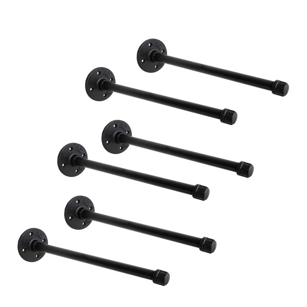 1/2" Industrial Black Iron Pipe Shelf Brackets, Rustic Wall Mounted DIY Shelving Brackets Hanging Custom Pipe Brackets for Floating Shelves (6, 12")