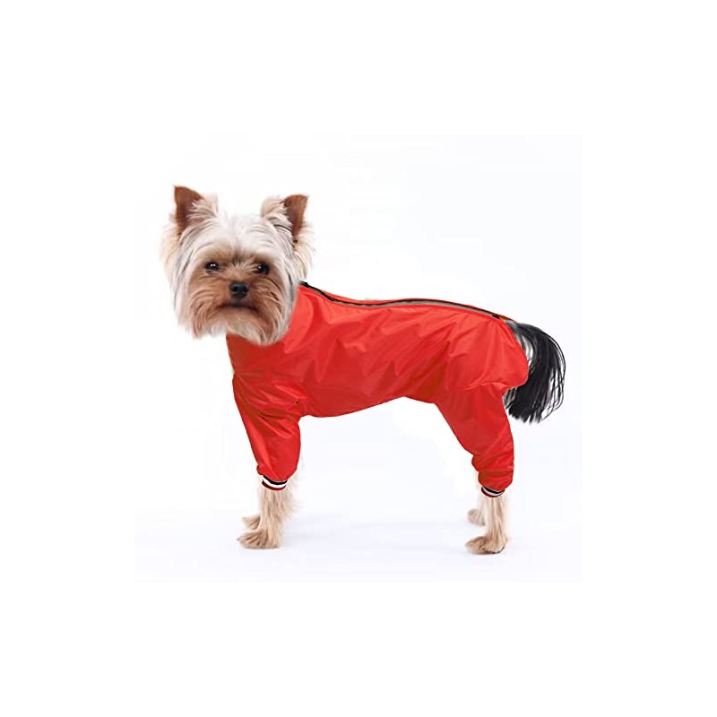 - 4.Elasticated leg cuffs - Dog raincoat can help your pets keep dry and comfortable in the outdoors or in wet weather.