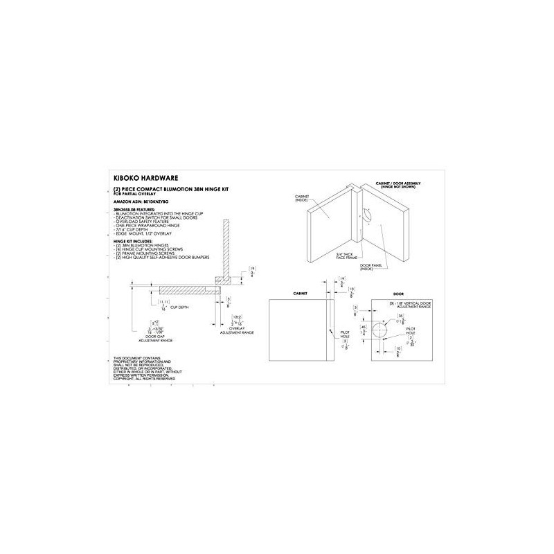 1/2" Overlay Blum Compact 38N Built in Soft-close with Blumotion Hinge (2 pack)