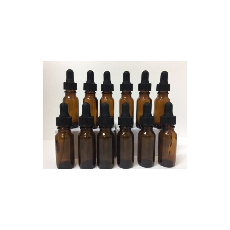 1/2 Oz Amber Glass Bottle with Glass Eye Dropper (15ml) - Pack of 12, New