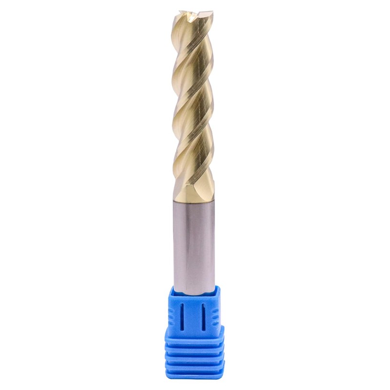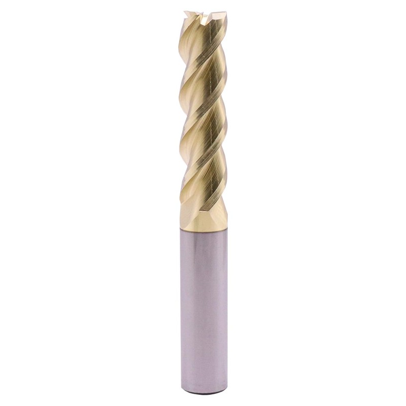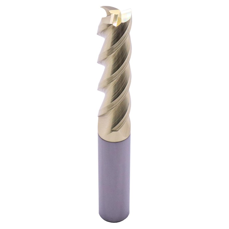 1/2" Solid Carbide Square Long End Mill - ZrN Coated, 3 Flute, 45ยฐ Helix, 1/2" Cutting Diameter, 1/2" Shank Diameter, 2" Length of Cut, 4" Overall Length for Milling Aluminum and Copper