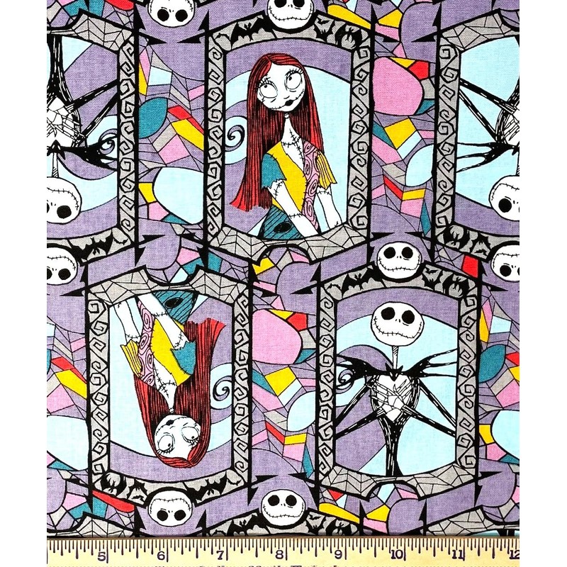 1/2 Yard - Jack & Sally Christmas Nightmare Stained Glass Window Cotton Fabric (Great for Quilting, Throws, Sewing, Craft Projects, and More) 1/2 Yard x 44"