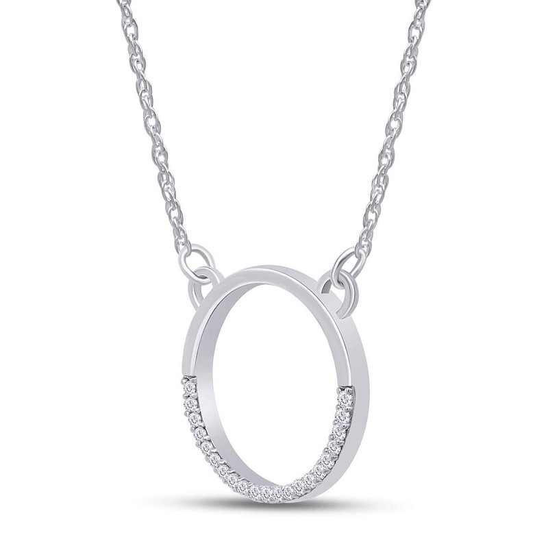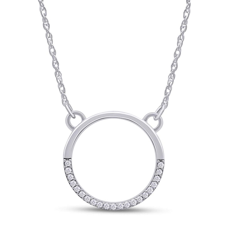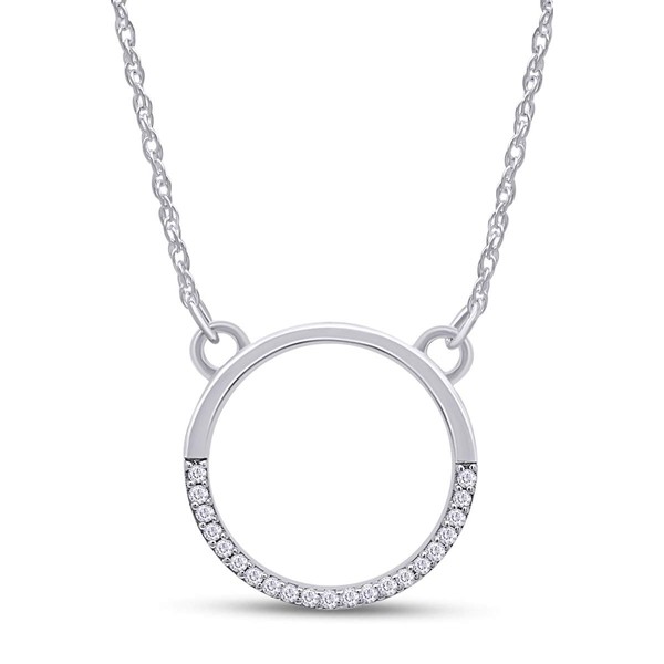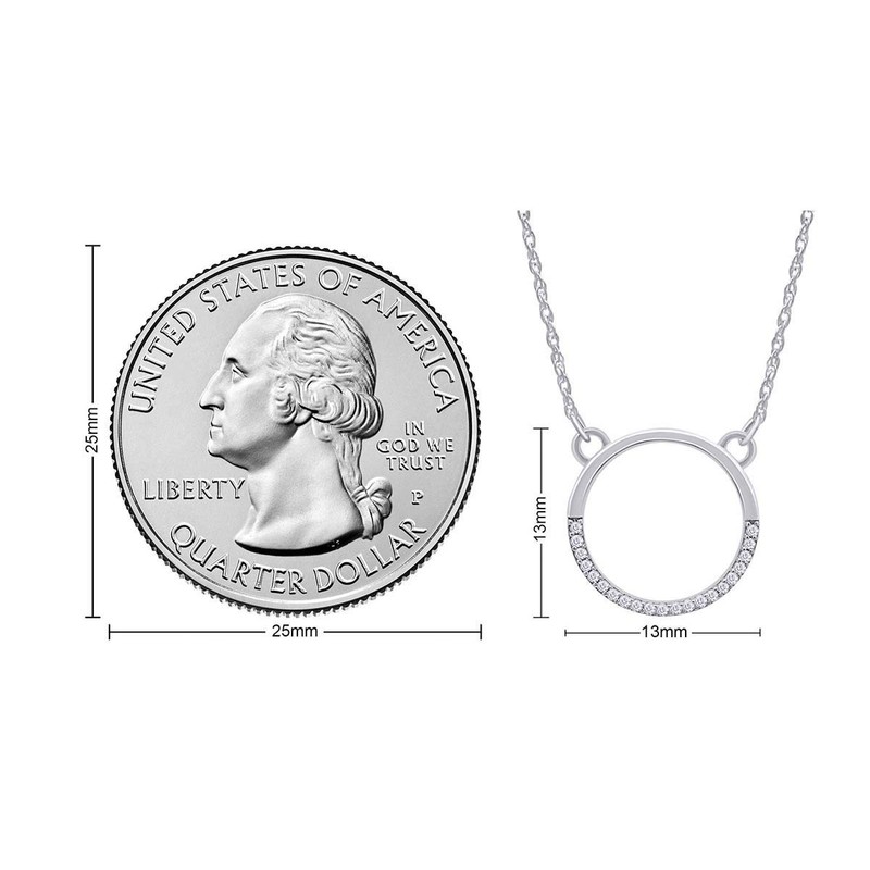 - This Open Circle Pendant Necklace Adds A Touch Of Nature-Inspired Beauty To Your Look In 14k White Gold Plated 925 Sterling Silver Makes a Standout Addition to Your Collection With 0.05 Carat (Cttw) Round Shape White Natural Diamond Accent. This Pendant Necklace are best gift idea for your loved ones, simple and perfect sized for everyday wear or any occasions.